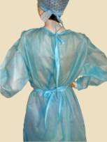 Халаты изготавливаются из нетканого материала «вуденпалп» плотностью 45 г/м, «спанбонд» плотностью 35 г/м и ламинированого спанбонда.